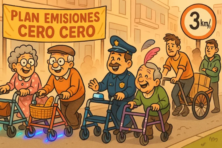 España lanza el plan “Emisiones Cero Cero”: solo andadores y carritos a tracción humana. Adiós a los coches, hola al lumbago ecológico.