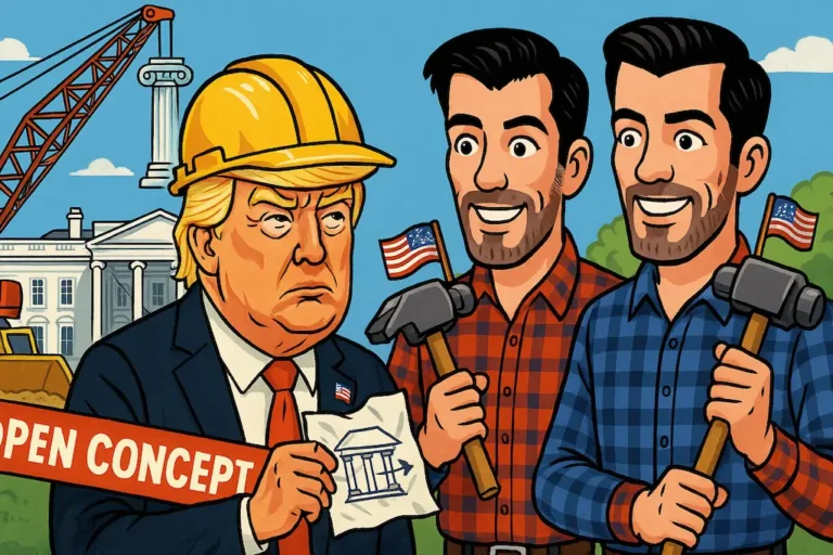 Los Gemelos Scott rediseñan el Ala Este: open concept, columnas patrocinadas y choques cómicos con Trump y el Servicio Secreto.