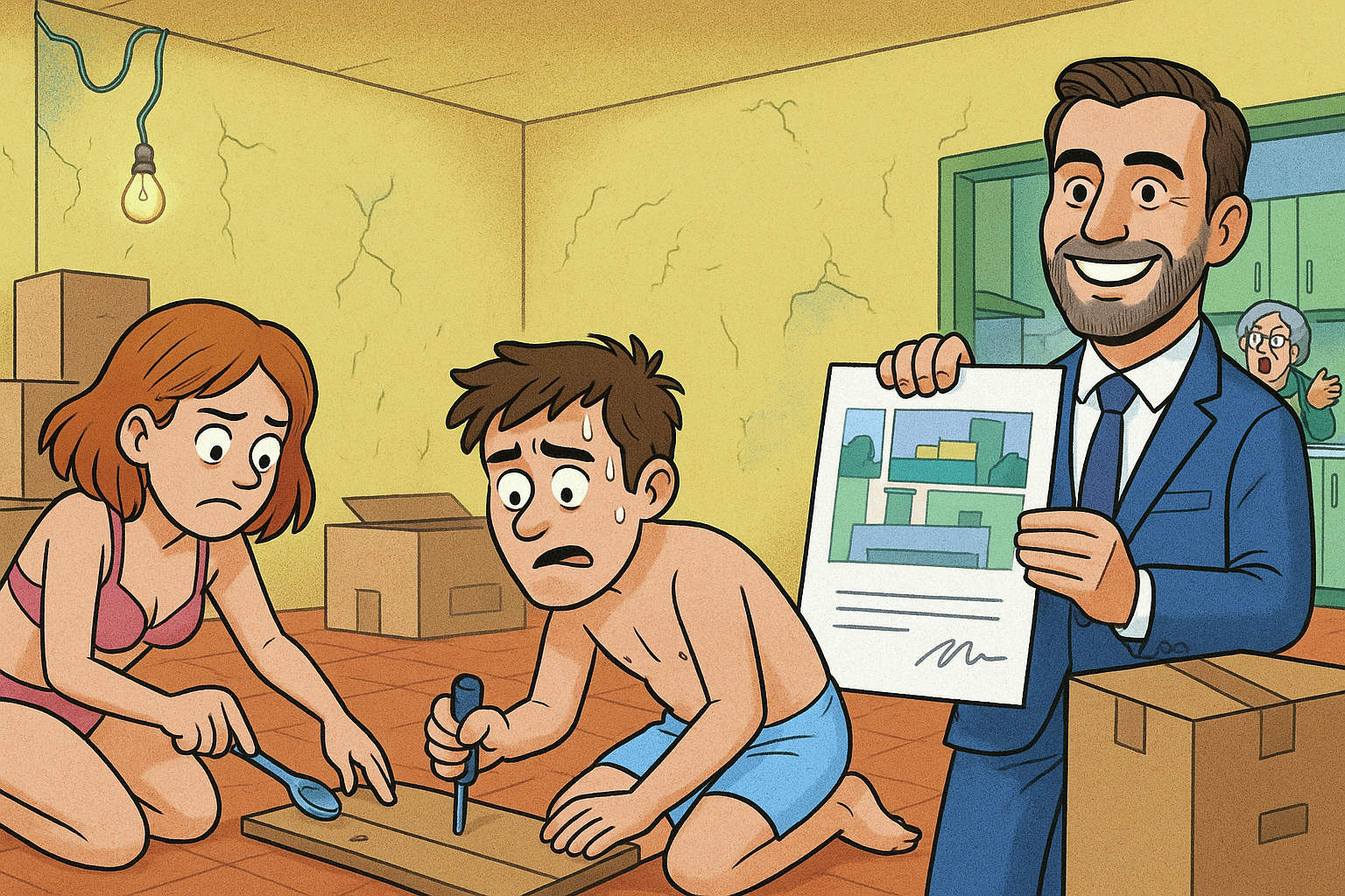 Una vez allí, tendrán que redecorarlo siguiendo retos semanales como “convierte tu baño en un spa usando solo materiales reciclados del contenedor amarillo” o “haz que tu cocina parezca funcional sin tener electrodomésticos”. Todo esto mientras firman una hipoteca en directo, asesorados por un “coach financiero” que en realidad es un camarero argentino con dos semanas de curso online.