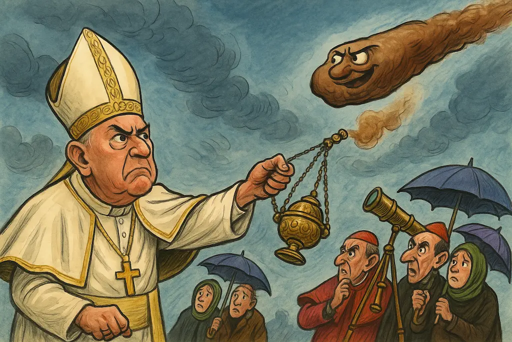 CIUDAD DEL VATICANO — Con la mirada al cielo y el incensario en alto, el Papa León XIV ha lanzado esta mañana una plegaria desesperada: “Señor, ¿por qué nos tratas como el váter del cuarto de invitados del cielo?”. La súplica, pronunciada con tono firme desde el balcón papal, iba dirigida al reciente visitante cósmico 3I/Atlas, un cometa interestelar que ha cruzado nuestro sistema solar dejando a su paso gases, partículas y una profunda sensación de que alguien allá arriba se está cagando en nosotros.